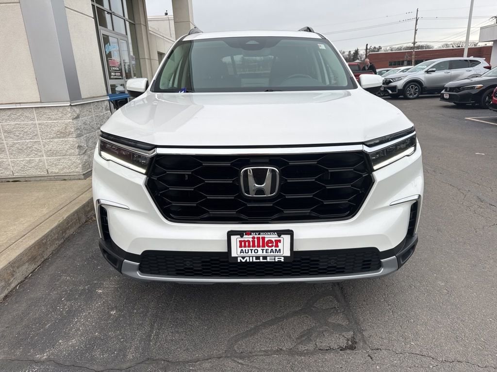 AWD, 12 Speakers, 3rd row seats: split-bench, 4-Wheel Disc Brakes, ABS brakes, Adaptive Cruise Control: Adaptive Cruise Control (ACC) with Low-Speed Follow, Air Conditioning, Alloy wheels, AM/FM radio: SiriusXM, Apple CarPlay/Android Auto, Auto High-beam Headlights, Auto-dimming Rear-View mirror, Automatic temperature control, Axle Ratio: 4.167, Blind Spot Information (BSI) System warning, Brake assist, Bumpers: body-color, Compass, Delay-off headlights, Driver door bin, Driver vanity mirror, Dual front impact airbags, Dual front side impact airbags, Electronic Stability Control, Emergency communication system: HondaLink, Exterior Parking Camera Rear, Four wheel independent suspension, Front anti-roll bar, Front Bucket Seats, Front Center Armrest, Front dual zone A/C, Front fog lights, Front reading lights, Fully automatic headlights, Garage door transmitter: HomeLink, Heated door mirrors, Heated Front Bucket Seats, Heated front seats, Illuminated entry, Knee airbag, Lane departure: Lane Keeping Assist System (LKAS) active, Leather Seat Trim, Low tire pressure warning, Memory seat, Navigation system: Honda Satellite-Linked Navigation System, Occupant sensing airbag, Outside temperature display, Overhead airbag, Overhead console, Panic alarm, Passenger door bin, Passenger vanity mirror, Power door mirrors, Power driver seat, Power Liftgate, Power moonroof, Power passenger seat, Power steering, Power windows, Radio data system, Radio: BOSE Premium Sound System, Rear air conditioning, Rear anti-roll bar, Rear reading lights, Rear seat center armrest, Rear window defroster, Rear window wiper, Reclining 3rd row seat, Remote keyless entry, Security system, Speed control, Speed-sensing steering, Speed-Sensitive Wipers, Split folding rear seat, Spoiler, Steering wheel mounted audio controls, Tachometer, Telescoping steering wheel, Tilt steering wheel, Traction control, Trip computer, Turn signal indicator mirrors, Variably intermittent wipers, and Wheels: 20" Shark Gray Machine Face w/Blk Lug Nuts.